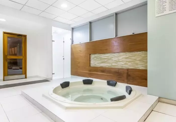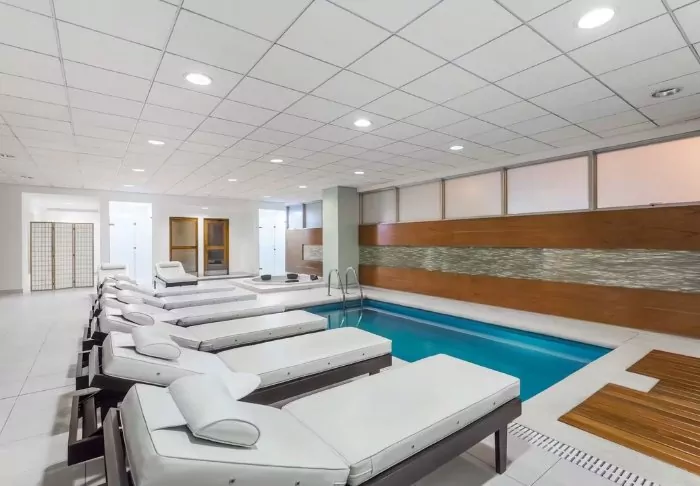 Als je na de lange vlucht wat beweging nodig hebt, is er zowel een fitnessruimte als een klein zwembad. Het hotel biedt ook ontspannende behandelingen in hun dagspa.