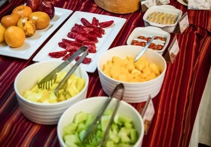 Aguas Calientes ligt aan de voet van Machu Picchu en het duurt ongeveer 30 minuten om daar de volgende ochtend met de bus heen te rijden. Hoewel het vertrek naar Machu Picchu vroeg is, kun je hier genieten van een goed ontbijtbuffet met een selectie brood, fruit, yoghurt en muesli.