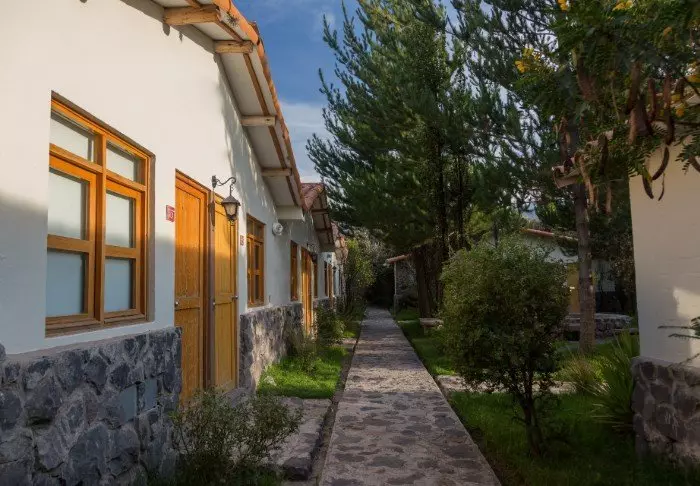 Het hotel heeft 51 kamers, allemaal met eigen badkamer, kluis en verwarming, omdat het hier ‘s nachts koud wordt vanwege de hoogte. Chivay ligt op een hoogte van 3.600 meter.