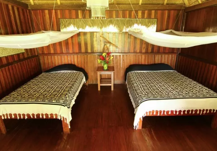 De lodge beschikt over 27 comfortabele bungalows en een “Casa Grande” met 4 aparte kamers. Alles is gebouwd van hout en de inrichting is eenvoudig, maar de bedden zijn voorzien van een muggennet, u heeft een eigen badkamer met warm water, een kluisje en een eigen terras met hangmatten waar u kunt liggen luisteren naar het kabbelende water van de rivier en de exotische geluiden uit de jungle.