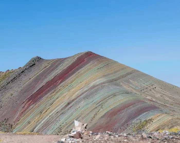 Als je nog meer van de magische Andes wilt ervaren, raden we je aan een optionele excursie naar de Rainbow Mountain te boeken. De berg is slechts een van de vele fascinerende regenboogkleurige bergen buiten Cusco. De prachtige kleuren zijn te danken aan de combinatie van kleurrijke mineralen die in deze omgeving worden gevormd. Het is echt een unieke ervaring om dit spectaculaire schouwspel van kleuren mee te maken rond de top van Rainbow Mountain op een hoogte van iets minder dan 5000 meter.