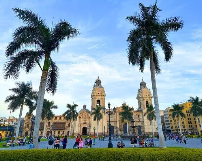 Je wordt opgehaald bij je hotel en wandelt eerst naar het levendige centrale plein van de stad, Plaza Mayor. Dit plein is prachtig versierd met rode, witte en gele bloemen, hoge palmbomen en een fontein met daarop de beschermengel van de stad. Het plein wordt omringd door prachtige koloniale gebouwen zoals het regeringspaleis, het aartsbisschoppelijk paleis en de indrukwekkende kathedraal van Lima, waar het stoffelijk overschot van Pizarro rust.