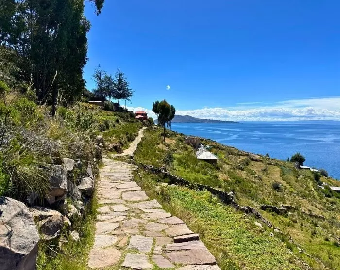 Je zult genieten van een lunch op het prachtige heuvelachtige eiland, en daarna zal je gids je meenemen op een wandeling naar het hoogste punt van het eiland, waarvandaan je een adembenemend uitzicht hebt op het meer van Titicaca, met de hoge bergen op de achtergrond.