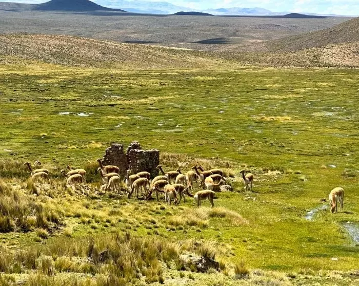 In de komende dagen zul je echt het machtige Andesgebergte ervaren. Je steekt het spectaculaire Altiplano-plateau over, dat wordt gekenmerkt door het droge, kale landschap met uitgestrekte open vlaktes waar je grazende lama’s en alpaca’s kunt zien. Op verschillende plaatsen rijd je op een hoogte van meer dan 4.000 meter. Het hoogste uitkijkpunt op de route heet Mirador de los volcanes, en op een heldere dag heb je vanaf hier een fantastisch uitzicht op de omliggende vulkanen. Het uitkijkpunt bevindt zich op een hoogte van ongeveer 4.900 meter en je zult onmiddellijk merken dat de ijle lucht op deze hoogte je ademhaling beïnvloedt. Het is dus een korte stop om foto’s te maken voordat je verdergaat naar de stad Chivay, die dient als de ingang van de Colca Canyon.