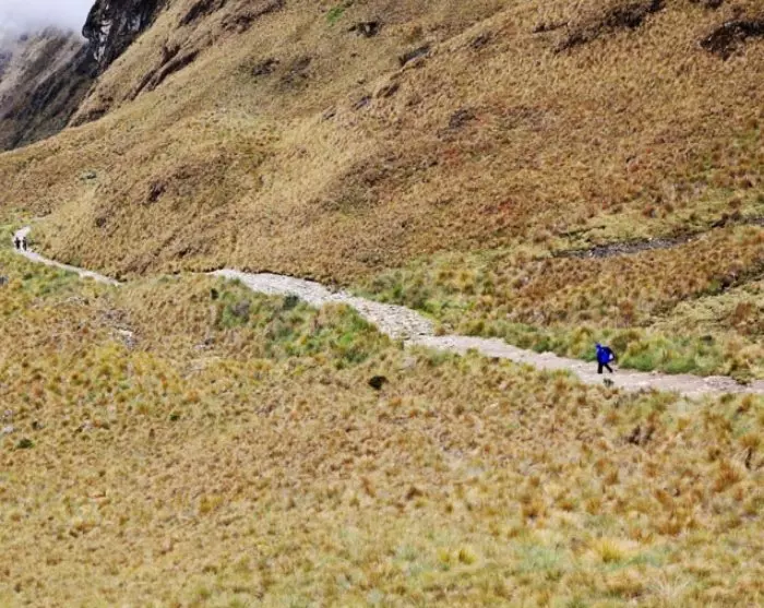 De afdaling begint vervolgens bij de Inca-trappen naar de rivier de Pacaymayo. Hier begint het verhaal van de Inca’s zich te ontvouwen en kom je bij de eerste van een groot aantal ruïnes: Runkurakay, een klein wachthuis dat vaak in mist is gehuld. Je wandelt over de originele Inca Trail naar Runkurakay Pass, gelegen op een hoogte van ongeveer 3.950 meter. Hier heb je op een zonnige dag een prachtig uitzicht op het Vilcabamba-gebergte, waar de Inca’s zich terugtrokken nadat ze tegen de Spanjaarden hadden gevochten. Je vervolgt de schilderachtige tocht naar de omvangrijke Sayacmarca-ruïnes op de top van een smalle klif, waar je een fascinerend inzicht krijgt in de ruïnes en de geschiedenis van het gebied. Daarna ga je verder door een klein nevelwoud naar je kamp in Chaquicocha met uitzicht op de omliggende bergen.