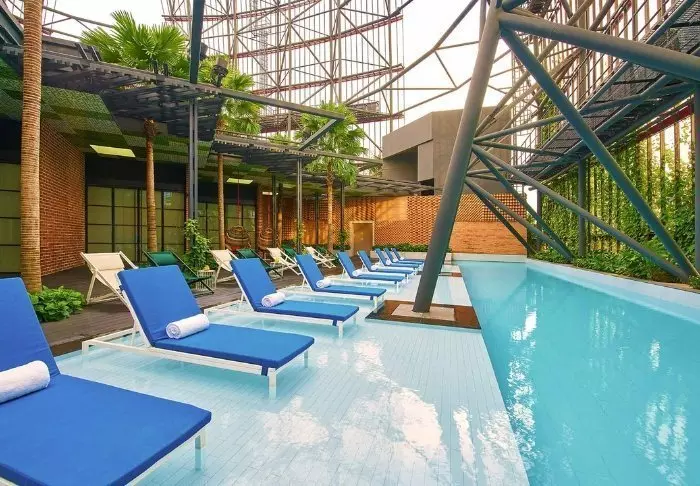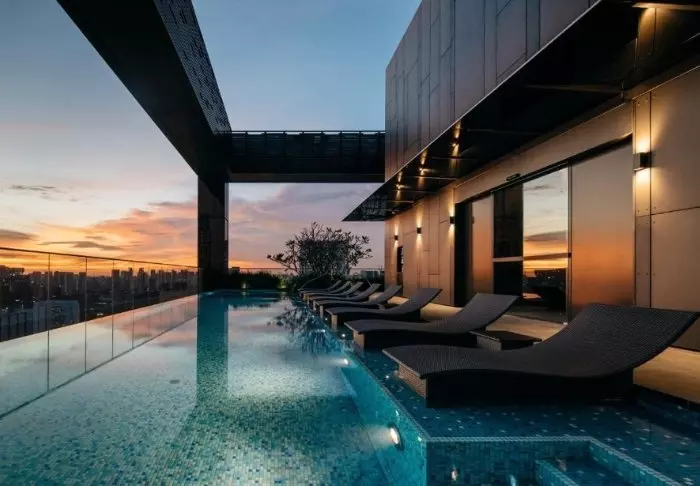 Op de bovenste verdieping vindt u de Sky Pool van het hotel, met het meest geweldige uitzicht op de hele stad. Hier kunt u relaxen op een ligbed bij het zwembad met een goed boek of genieten van een prachtige zonsondergang na een lange dag vol van indrukken.