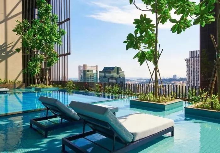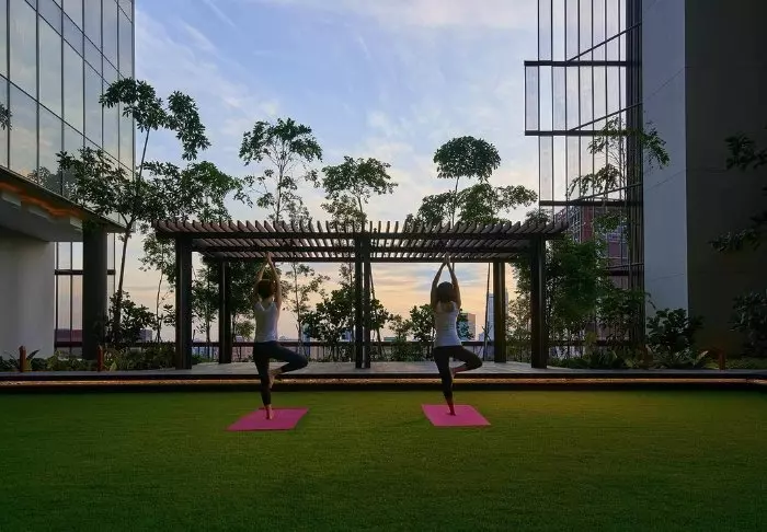 U ziet het spectaculaire ‘omarmen van de natuur’ midden in de grote stad niet alleen van buitenaf. Op de 27e verdieping vindt u namelijk het dakterras, dat is opgesierd met 21 verschillende soorten klimplanten en wijnranken. Hier heeft u volop gelegenheid om te ontspannen op een ligbed naast een van de twee zwembaden. Een paar verdiepingen lager vindt u nog een terras, dat eruit ziet als een weelderige oase. Neem een goed boek mee en ga in de lounge zitten of trek uw sportkleding aan en doe uw oefeningen op het groene gras, terwijl u geniet van het fantastische uitzicht. U heeft ook de mogelijkheid om gebruik te maken van de fitnessruimte, die 24 uur per dag geopend is.