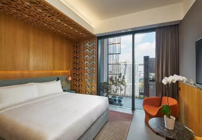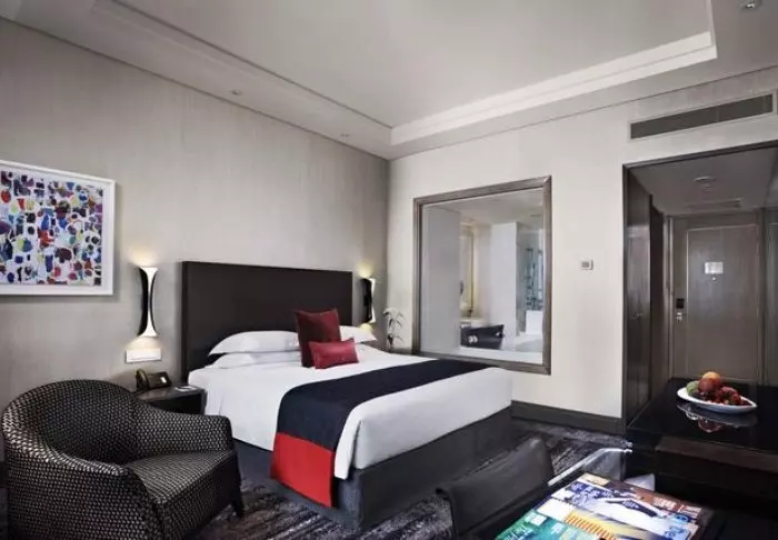 Het hotel heeft een elegante, comfortabele sfeer die is doorgevoerd in de 386 kamers van het hotel. Alle kamers zijn stijlvol en comfortabel ingericht en geven uitzicht op de indrukwekkende skyline van Singapore. De kamers zijn min. 32 m2 groot en van alle gemakken voorzien voor een aangenaam verblijf, zoals wifi, airconditioning, kluisje, minibar, koffie- en theefaciliteiten en een strijkijzer en strijkplank. De badkamer is eveneens ruim en voorzien van een douche of bad, toiletartikelen en een föhn.