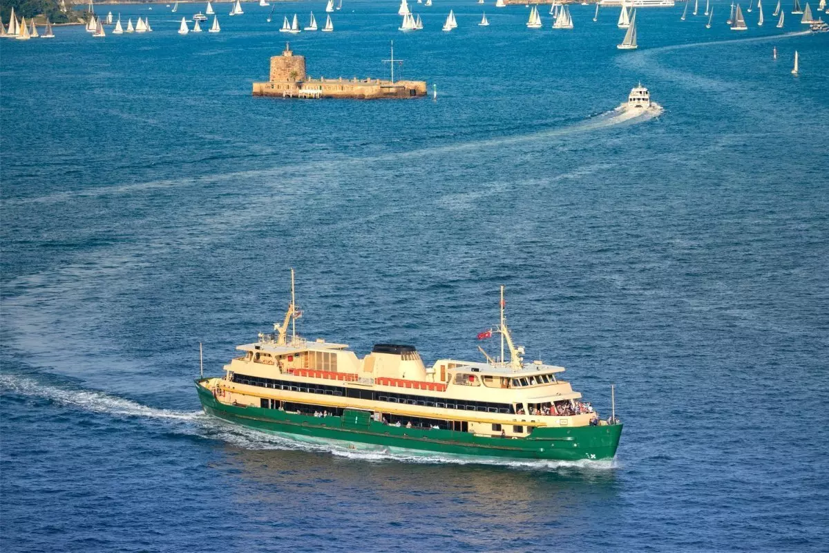 Sydney is gebouwd rond de grootste natuurlijke haven ter wereld, en het is gezellig druk op het water. Kleine compacte veerboten vervoeren “Sydney-siders” tussen de buitenwijken en de kantoren midden in de stad, watertaxi’s zoeven heen en weer, grote en kleine zeilschepen varen rond met hun witte zeilen, en misschien verschijnt er plotseling een gigantisch cruiseschip.