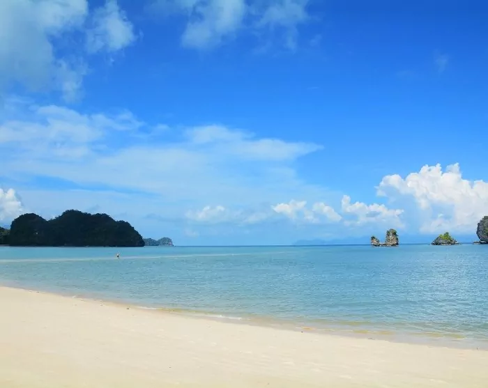 De reis eindigt op het eiland Langkawi, waar zachte zandstranden uitnodigen tot ontspanning en heerlijke natuurlijke ervaringen – perfect om de avonturen en indrukken van uw reis te absorberen.