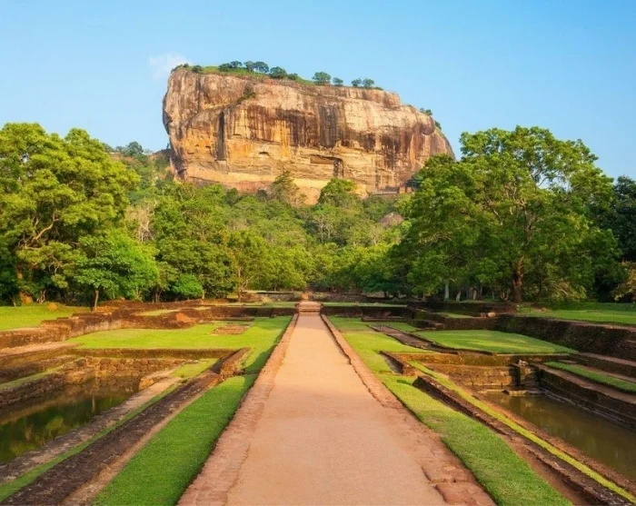 Sigiriya is een dramatische rots die 200 meter boven het vlakke, beboste landschap uitsteekt. De rots staat bekend om zijn ruïnes op de top, die terug te voeren zijn tot 477 voor Chr.