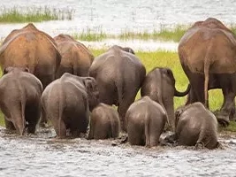 Van mei-september (het droge seizoen) kunt u ‘the Elephant Gathering’ meemaken, waarbij de olifanten van heinde en verre komen om water te drinken in het grote meer van het nationale park. In sommige periodes verzamelen zich hier enkele honderden olifanten.