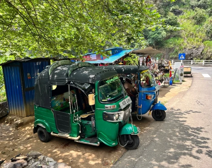 Uw eerste stop is Ravana Falls, een van de breedste en meest indrukwekkende watervallen van Sri Lanka. Hier stort het water met veel kracht 25 meter omlaag tegen de rotsen, zo krachtig dat u de nevel bijna kunt voelen. Volgens de legende woonde de demonenkoning Ravana hier en verborg hij prinses Sitha in een grot achter de waterval—een betoverend verhaal dat de fantasie prikkelt terwijl u kijkt naar het neerstortende water.