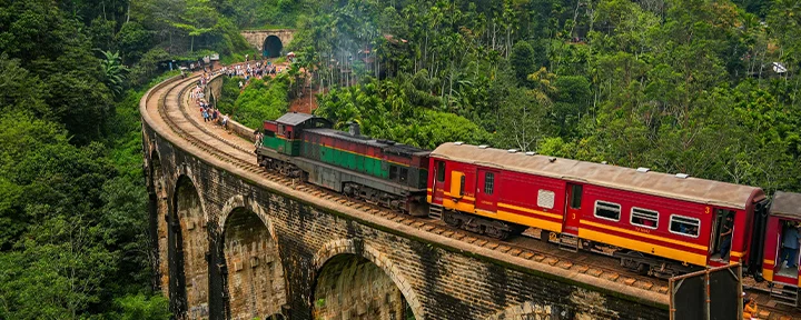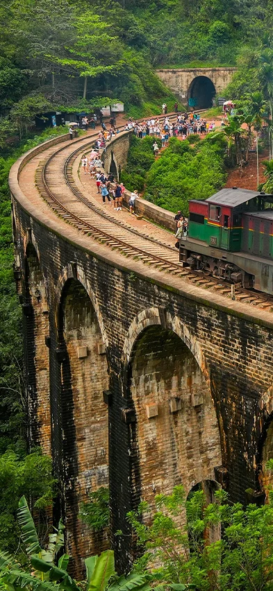 Onderweg wandelt u over smalle paden tussen bananenpalmen en theestruiken, waar u misschien een praatje maakt met kinderen die opgroeien tussen de vele theeplantages in deze streek. Aan het einde van de wandeling wacht de Nine Arch Railway Bridge op u – bijna 30 meter hoog torent dit architectonische meesterwerk majestueus boven het weelderige landschap uit.