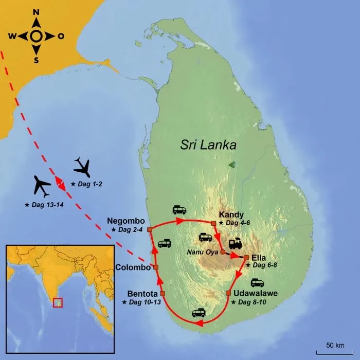 Na aankomst, ten noorden van de hoofdstad Colombo, gaat u eerst door de paspoortcontrole en haalt u uw bagage op. In de aankomsthal staat uw gids klaar om u te verwelkomen, met een TourCompass-bord, een stralende glimlach en echte Sri Lankaanse gastvrijheid.