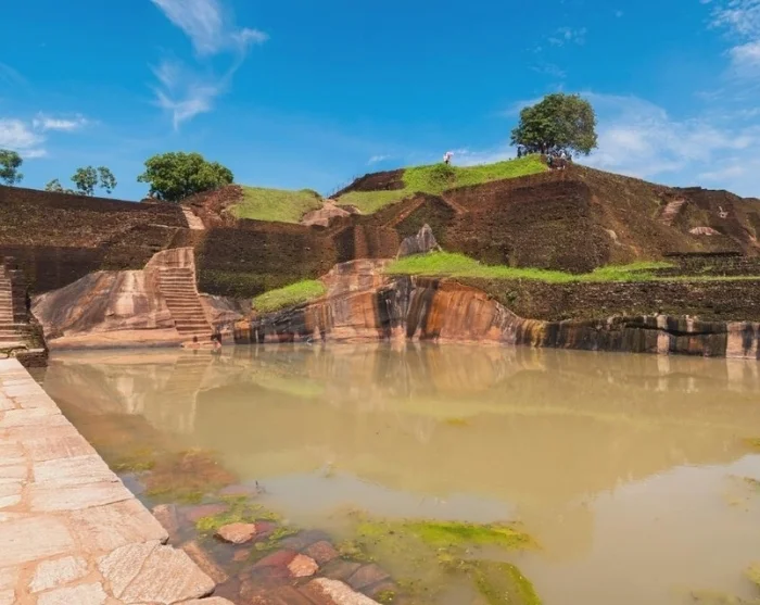 Op de vlakke top van de rots wacht u een onvergetelijke ervaring. Hier wordt u getrakteerd op een adembenemend uitzicht over de ruïnes van het eeuwenoude koninklijk paleis, omringd door grachten, waterpartijen en weelderige tuinen. Aan de horizon ontvouwt zich een zee van groene jungle, bergen en dorpjes, en in de verte ziet u Pidurangala Rock opdoemen.