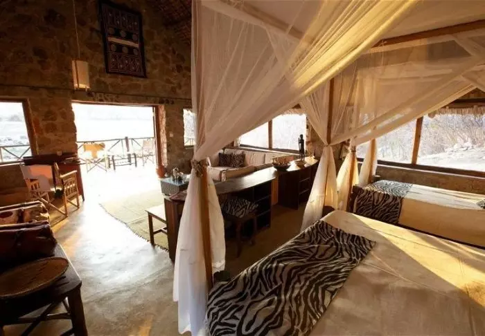 De lodge bestaat uit 24 hutten die iets boven het landschap uitsteken bij een bocht in de rivier de Ruaha, met prachtig uitzicht op het omringende landschap. De hutten zijn gebouwd van steen met rieten daken – allemaal lokaal geproduceerd en gebouwd door plaatselijke vakmensen. Alle hutten hebben een grote veranda met prachtig uitzicht op de rivier de Ruaha, en ze zijn natuurlijk ingericht met tafels en stoelen zodat je comfortabel buiten kunt zitten en kunt volgen wat er in en rond de rivier gebeurt.