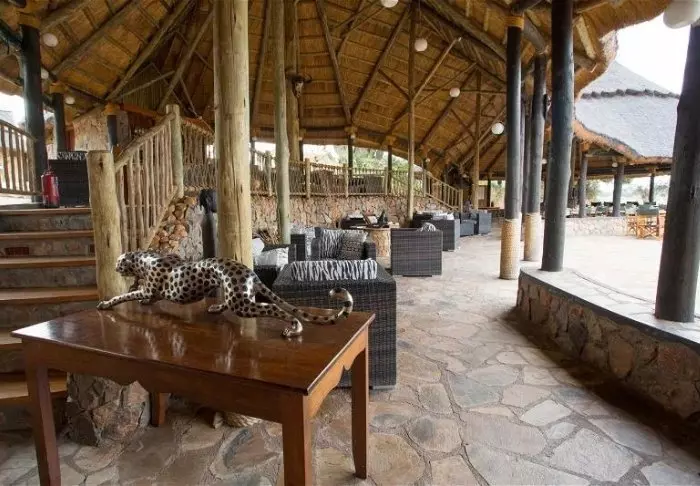 Een van de twee restaurants van de lodge ligt hoog op een kopje en biedt een uniek uitzicht over de omgeving. Het tweede restaurant bevindt zich in het hoofdgebouw, waar je ook de receptie en een gezellige loungeruimte met stoelen en tafels vindt.