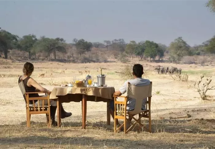 Binnen in de hutten is er veel bagageruimte, de bedden zijn voorzien van klamboes, er is een gezellige loungehoek en een badkamer met door zonne-energie verwarmd water. Je kunt je camera en telefoon opladen, maar houd er rekening mee dat het kamp wordt gevoed door generatoren, die om milieuredenen ‘s nachts worden uitgeschakeld. Het is daarom een goed idee om een extra powerbank mee te nemen.