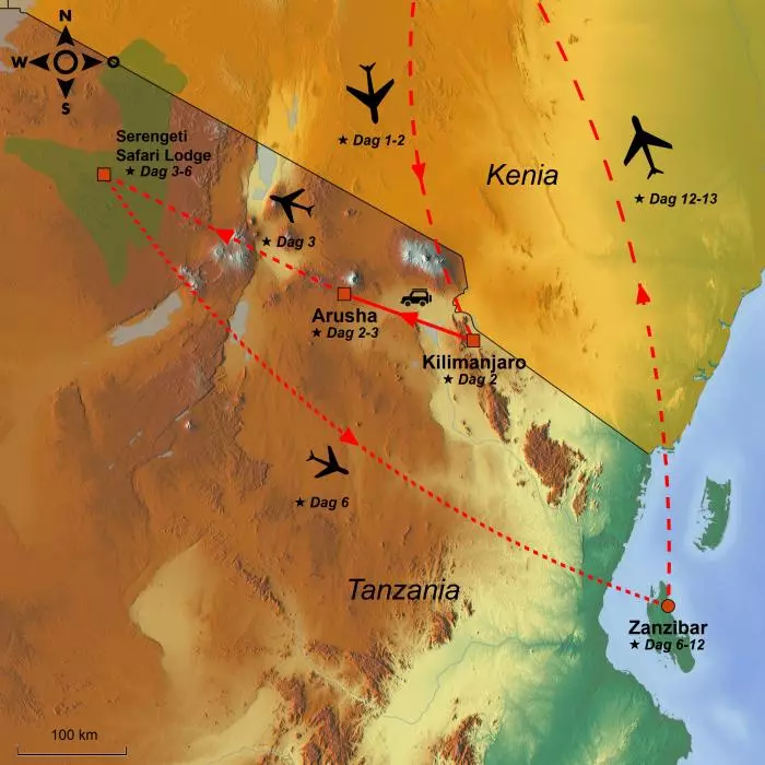 In Kilimanjaro luchthaven staat onze samenwerkingspartner klaar om u door de douane te begeleiden. Van de luchthaven rijdt u in ongeveer een uur naar Arusha, waar u één overnachting heeft. De volgende ochtend vliegt u rechtstreeks naar Serengeti.
