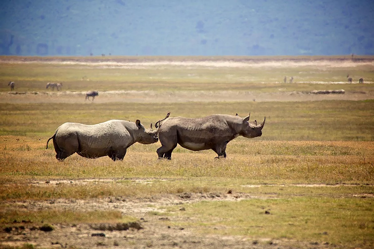 De Ngorongoro krater staat net als Serengeti op de werelderfgoedlijst van UNESCO en het is niet moeilijk om te begrijpen waarom. Het is fascinerend om te zien hoe het landschap verandert, hoe dichter je bij de krater komt. Vanaf de rand van de krater kronkelt de weg aan de binnenkant van de gedoofde vulkaankrater 600 meter naar beneden, tot aan de 260 km² grote, weelderige kraterbodem. In de krater ziet u zowel savanne, moeras, meren, kleine riviertjes, acaciabossen en een zoutwatermeer. Er leven tussen de 25.000 en 30.000 dieren in de krater. De ervaring op de bodem van de krater wordt door velen vergeleken met “een rit door Jurassic Park”, omdat er overal dieren zijn. Er zijn in dit kleine gebied 5 leeuwenfamilies, grote kuddes buffels, flamingo’s en zelfs de zwarte neushoorn heeft zijn weg naar de krater gevonden. Het enige dier dat u hier nooit tegen zult komen is de giraf, die nog nooit in de krater is geweest. Dit komt waarschijnlijk doordat hij met zijn lange, dunne poten de steile hellingen niet af kan.