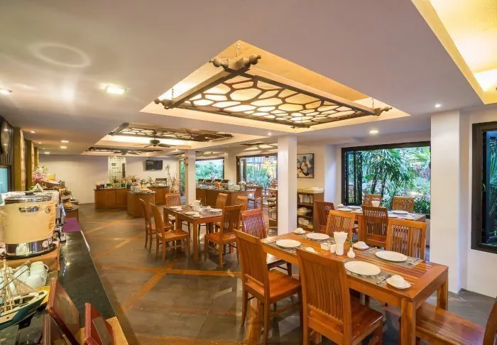 Er is ook een café en restaurant waar zowel internationale als Thaise gerechten worden geserveerd.