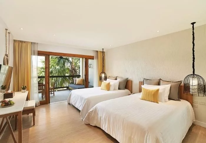 Het resort beschikt in totaal over 168 lichte, uitnodigende kamers met een eenvoudige, moderne stijl. De kamers zijn voorzien van airconditioning, wifi, waterkoker, kluisje en een eigen badkamer met föhn, toiletartikelen en ochtendjassen. Ook is er een bureautje en een eigen balkon met een ligbed. Het balkon is een perfecte plek om de dag rustig te beginnen met een kopje koffie of de dag af te sluiten onder het genot van een koud drankje en een zacht avondbriesje voordat u naar bed gaat.