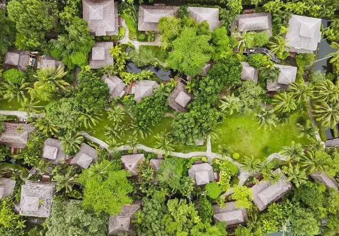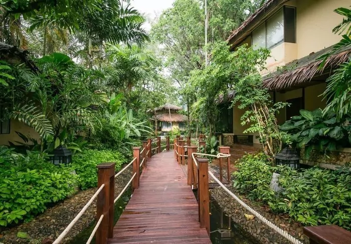 Het resort beslaat een groot gebied met weelderige tropische vegetatie en een charmant loopbruggensysteem dat je door de verschillende gebieden leidt.