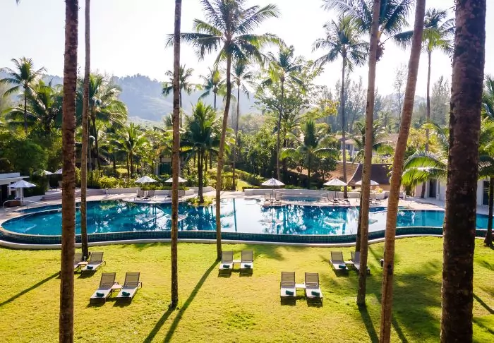 Voor de weelderige bergen en tussen de wuivende kokospalmen vindt u Outrigger Khao Lak Beach Resort, direct gelegen aan het strand van Bangsak met uitzicht op de Andamanse Zee.