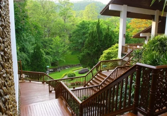 Het resort is gebouwd en ingericht met prachtig, donker hout en straalt Noord-Thaise charme uit.