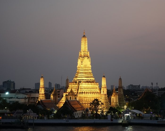 De avond eindigt in de relaxte rooftop bar Eagle Nest, gelegen aan de Chao Phraya-rivier met uitzicht op de verlichte tempel Wat Arun. Een mooier uitzicht kan haast niet!