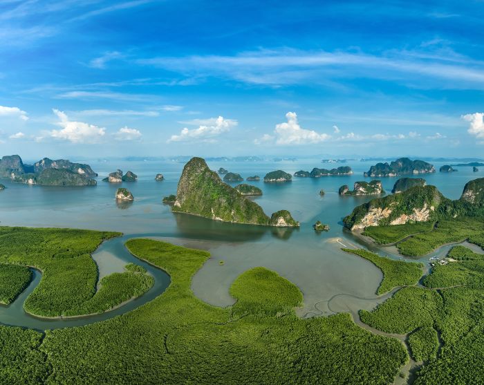 Vandaag brengt u de dag door in de prachtige Phang Nga-baai, gelegen tussen Phuket en het vasteland van Thailand. Dit is een van de mooiste baaien van Thailand. Kalksteenrotsen rijzen loodrecht op uit het heldere, blauwgroene water. Op sommige plekken zijn het kale rotsen, op andere plekken zijn ze begroeid met struiken en bomen, en leven er apen, varanen en heel veel vogels.