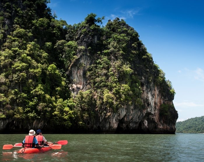 U gaat verder met een langstaartboot en bezoekt de eilanden Koh Aung en Koh Talabeng, met de iconische kalksteenrotsen en de schilderachtige baaien. Bij Koh Talabeng maakt u een onvergetelijke kajaktocht rond het eiland, waarbij u de ongerepte natuur, de majestueuze kalksteenrotsen en de fascinerende grotten bewondert.
