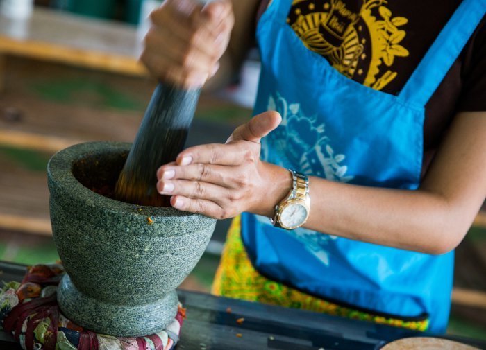 Veel Thaise gerechten zijn gebaseerd op een ‘curry paste’, dus uiteraard leert u er een te maken vandaag. Helemaal vanaf de basis! De gids laat zien hoe u de kruiden in de vijzel fijn stampt, zodat u er de meeste smaak uit haalt, en u leert precies hoeveel knoflook u moet smoren zonder dat het verbrand smaakt. De pasta wordt gebruikt in de heerlijkste maaltijd die u gaat eten als lunch. Natuurlijk wordt het hele proces zorgvuldig opgeschreven en krijgt u het recept mee naar huis, zodat u ook thuis de perfecte ‘curry paste’ kunt maken voor uw bezoek dat de vakantiefoto’s komt bekijken.