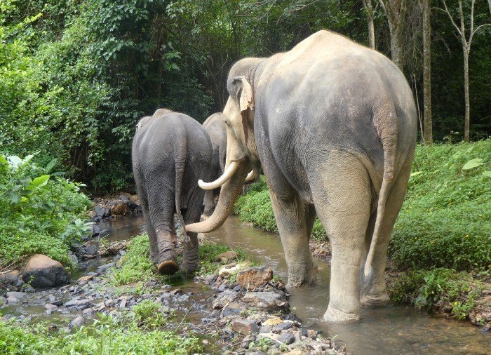 Deze twee olifanten zijn opgegroeid in een olifantenkamp en hebben in de bosbouw en de entertainmentsector van Koh Lanta gewerkt. In 2017 besloot Charae “Ray” Sangkaow, de eigenaar, om het olifantenkamp te veranderen in een authentieke, duurzame en olifantvriendelijke plek. Hij kreeg hulp van World Animal Protection om zijn droom te verwezenlijken en een zo natuurlijk en veilig mogelijk toevluchtsoord voor de olifanten te creëren. Jahn en Mae Thongsuk hoefden dus nooit meer ritjes te maken of boomstammen op te tillen. Following Giant werkt nog steeds actief samen met World Animal Protection op het gebied van training en ontwikkeling, en het verbeteren van het welzijn van de olifanten en van hun omgeving.
