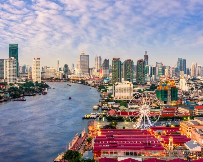 Bangkok wordt in tweeën gedeeld door de 372 km lange Chao Phraya-rivier. Het oostelijke deel van de stad wordt beschouwd als het centrale Bangkok. Hier vind je populaire gebieden zoals Sukhumvit, Silom en Chinatown, waar een hoge concentratie aan winkelcentra, lokale markten en uitstekende eetgelegenheden te vinden is. Aan deze oostkant ontdek je ook het historische deel van Bangkok, waar de koninklijke residentie van de stad, het Grand Palace, en de Tempel van de Smaragden Boeddha, Wat Phra Kaew, zich bevinden.