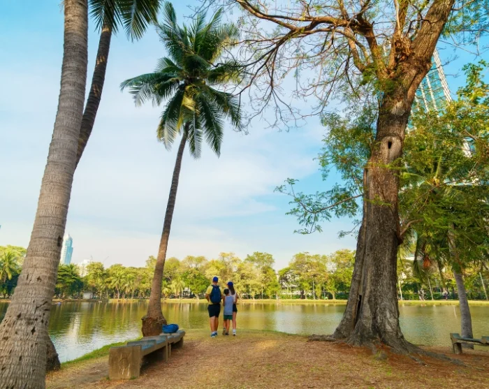 Na het rondzwerven door Bangkok in de tropische hitte en het lawaaiige verkeer, zul je ongetwijfeld momenten hebben waarop je verlangt naar groenere en rustigere plekken. Dit is de perfecte kans om Lumpini- of Benjakitiparken te bezoeken. Als alternatief kun je ook naar de westelijke kant van de rivier gaan, waar je een compleet andere wereld zult ervaren, zonder wolkenkrabbers en toeterende tuk-tuks. Hier ontmoet je het traditionele Bangkok met zijn doolhof van kanalen, waar huizen op palen staan en post per boot wordt bezorgd.