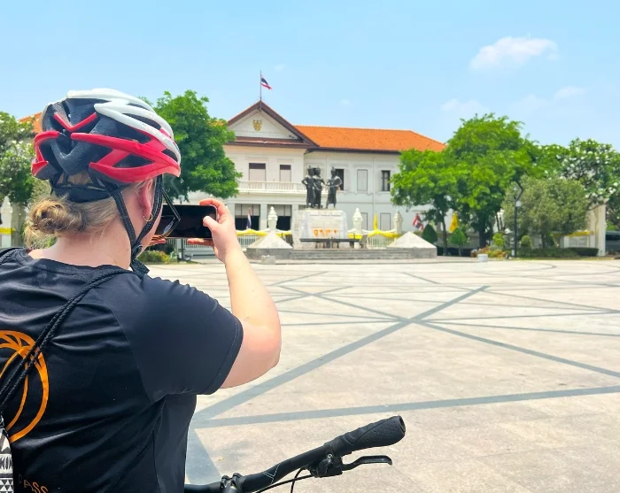 Onderweg vangt u een glimp op van verschillende beroemde bezienswaardigheden van Bangkok, die prachtig verlicht zijn in de avond. Dit omvat het Democracy Monument, gelegen aan de drukke Ratchadamnoen Avenue – niet ver van het Koninklijk Paleis.