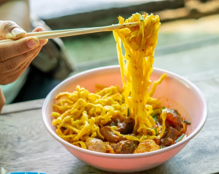 Na 3-4 uur fietsen ben je weer terug bij het startpunt en wacht een welverdiende lunch op je. De lunch bestaat uit ‘khao soi’, een pittige noedelsoep en een specialiteit in noordelijk Thailand. Het wordt geserveerd in het Naree De Klang Vieng restaurant, dat dagelijks wordt beheerd door vrouwelijke gevangenen uit de Klang Vieng vrouwen gevangenis. Dankzij het uitstekende rehabilitatieproject van de gevangenis krijgen de vrouwen, die meestal veroordeeld zijn voor drugsgerelateerde overtredingen, de kans om opgeleid te worden in verschillende serviceberoepen, waardoor ze zich kunnen voorbereiden op een nieuw leven buiten de gevangenismuren. Het eten en de service zijn van topkwaliteit!