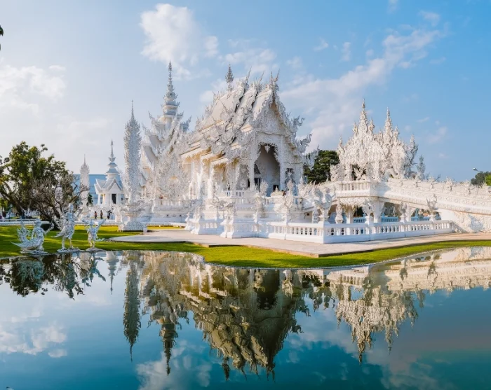 Onderweg naar Chiang Rai bezoek je de indrukwekkende Rong Khun Tempel, beter bekend als de Witte Tempel. Dit moderne meesterwerk uit 1997 is gemaakt door de lokale kunstenaar Chalermchai Kositpipat en onderscheidt zich sterk van de traditionele tempels in Thailand. De unieke witte en zilveren façade symboliseert zuiverheid en verlichting, terwijl de vele details zowel religieuze als verrassend moderne verwijzingen bevatten.