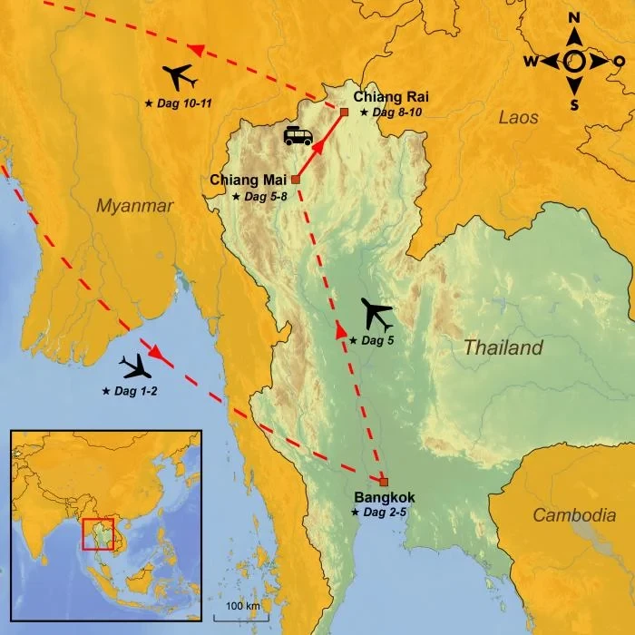 Ontdek alle facetten van Thailand: de levendige straten en heerlijke streetfood van Bangkok, de rustgevende sfeer en oude tempels van Chiang Mai, en de avonturen in de Gouden Driehoek in Chiang Rai.