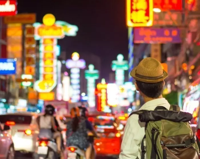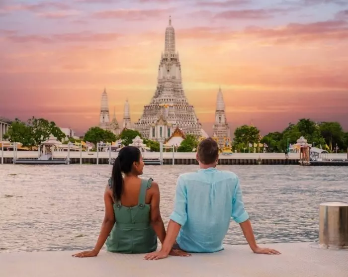 De reis begint in de bruisende hoofdstad van Thailand, Bangkok. Hier rijden kleurrijke tuktuks langs moderne wolkenkrabbers van staal en glas, die zij aan zij staan met prachtige tempels.