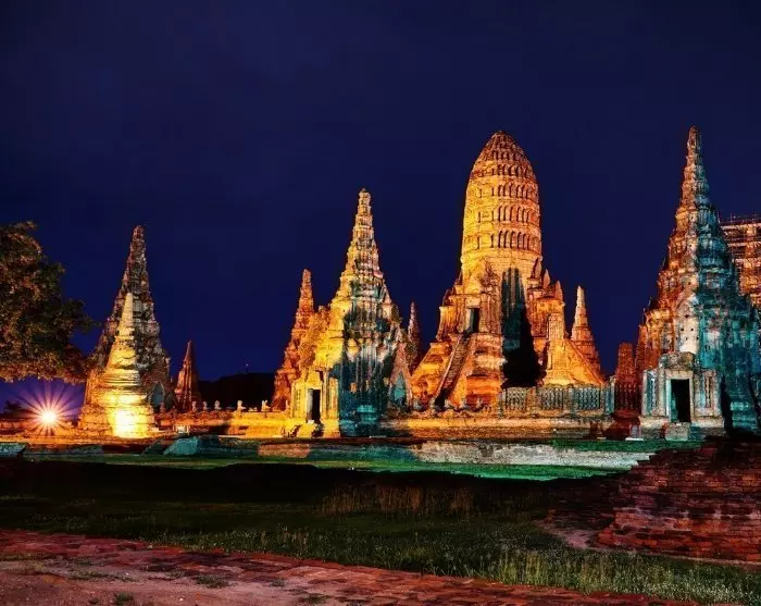 Hierna kunt u genieten van het zicht van de verlichte tempels, die u morgen zult bezoeken op uw excursie naar het Ayutthaya Historical Park.