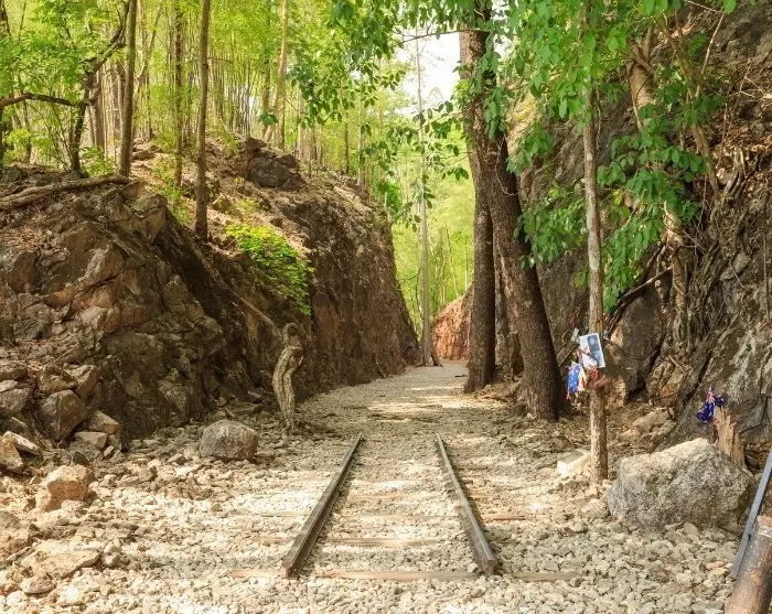 Aan het begin van de middag word je naar de Hellfire Pass gereden, een van de moeilijkste plekken om de spoorweg aan te leggen omdat hij hier door een rotswand loopt. Er werd de klok rond gewerkt en ‘s nachts werden fakkels gebruikt om het gebied te verlichten, waar de pas zijn naam aan te danken heeft. Hier loop je een deel van het Hellfire Pass Memorial Walking Trail, dat de oorspronkelijke spoorbedding volgt.