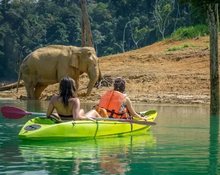 De rit van Donsak Pier naar Khao Sok duurt ongeveer 2 uur en 45 minuten. Na aankomst bij uw hotel maakt u een ontspannen kanotocht over de Sok-rivier. Het is een magische ervaring om zo rustig over het water te glijden en helemaal op te gaan in de natuurgeluiden van het regenwoud om u heen. Onderweg ziet u indrukwekkende kalkstenen kliffen en een weelderig groene omgeving. Luister hoog in de bomen naar vogelgezang en speur langs de oever naar bijvoorbeeld een leguaan. Het mooiste is dat u achterover kunt leunen en alle indrukken in zich kunt opnemen, terwijl uw lokale gids het peddelwerk doet.