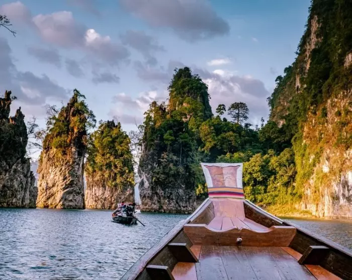 Daarna wordt u naar de Ratchabrapa-pier gebracht, vlakbij de indrukwekkende dam. Hier gaat u aan boord van een langstaartboot en vaart u naar het Cheow Lan-meer, waar u kunt genieten van het majestueuze landschap met de iconische kalksteenrotsen.