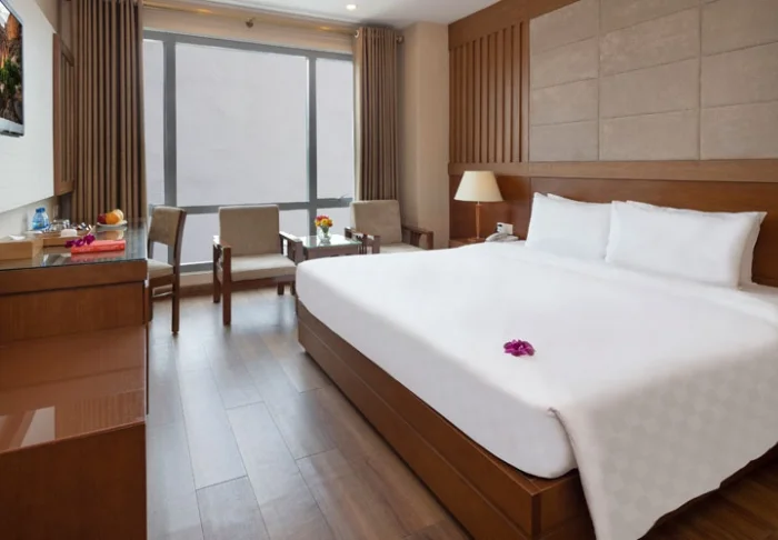Het ontbijt wordt geserveerd in de vorm van een buffet met een heerlijke mix van Vietnamese specialiteiten en internationale klassiekers. Voor het diner kunt u terecht in het restaurant van het hotel, of u kunt de buurt verkennen, waar zowel locals als reizigers samen genieten van dampende kommen pho en frisse Saigon-biertjes.