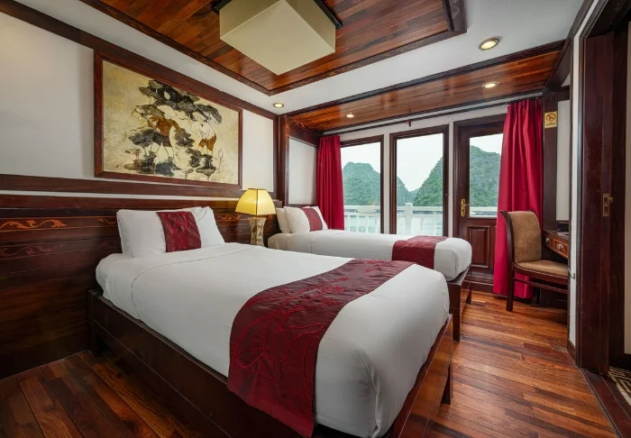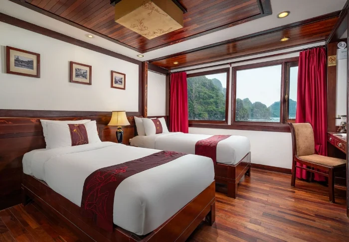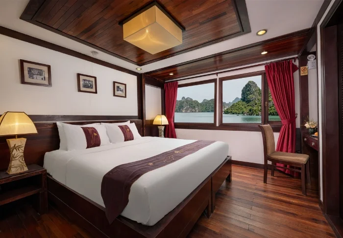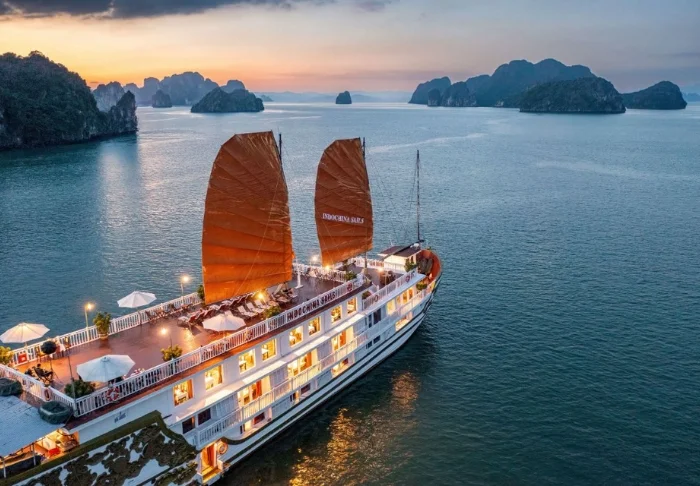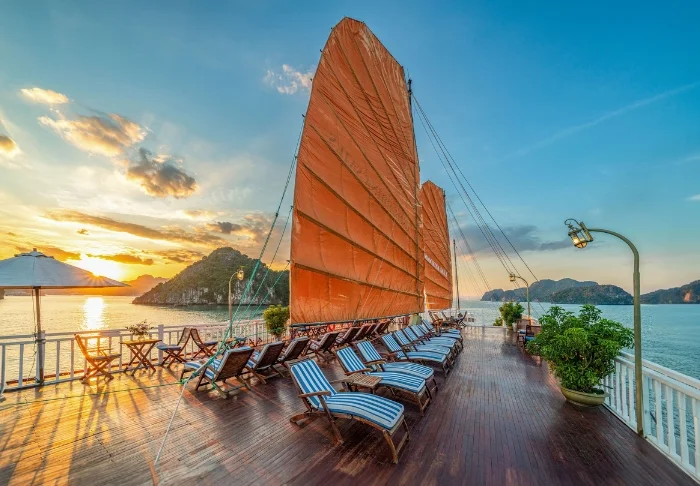Indochina Sails tilt de cruise-ervaring op de Ha Long baai naar een hoger niveau. Aan boord van dit elegante houten schip, met slechts 23 hutten, proeft u direct een werkelijk exclusieve sfeer waarin perfecte service, oog voor detail en een warme ambiance naadloos samenkomen. Al decennialang behoort dit schip tot de meest gewaardeerde schepen van de baai, en het staat bekend om zijn uitzonderlijke kwaliteit.