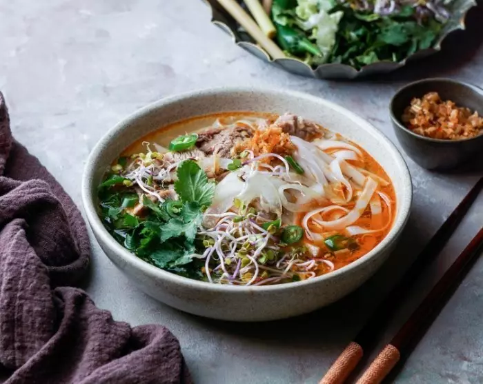 Om de avond af te sluiten, word je naar nog een andere street food-kraam gebracht om de beroemde plaatselijke rundvleesnoedelsoep bún bò Hué te proeven. Geniet ten slotte van het dessert chè, een zoete soep gevuld met heerlijke toppings en geserveerd op gemalen ijs of kokosmelk.