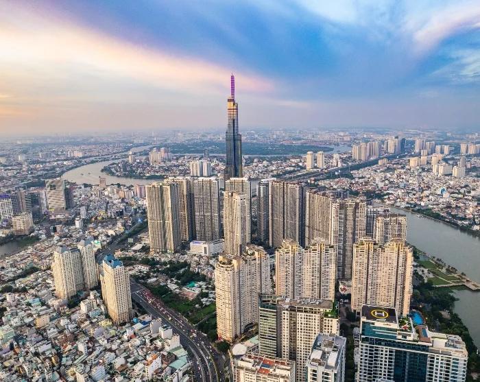 Sluit uw dag af met een magisch uitzicht over de zee van stadslampen vanaf het dak van een van Ho Chi Minhstad’s wolkenkrabbers, zoals de Bitexco Financial Tower of Landmark 81.